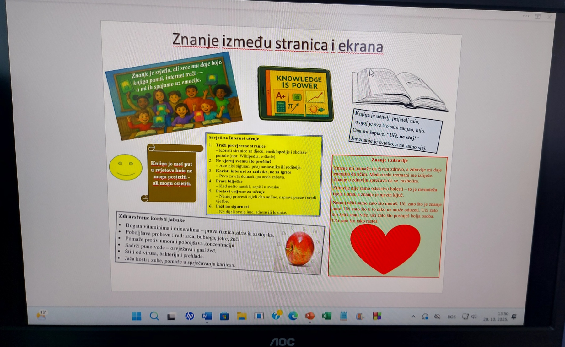 Nastavnici su osmislili časove koji povezuju više oblasti – od jezika i informatike do zdravih životnih stilova i kulturne baštine. Korištenjem grupnog rada, scenskih nastupa, digitalnih alata i praktičnih zadataka, učenici su učili kroz iskustvo, istraživanje i međusobnu saradnju. Poseban akcenat stavljen je na međupredmetnu povezanost, primjenu znanja u stvarnom kontekstu i podsticanje pozitivnih vrijednosti poput samopouzdanja, uvažavanja različitosti i zajedništva.